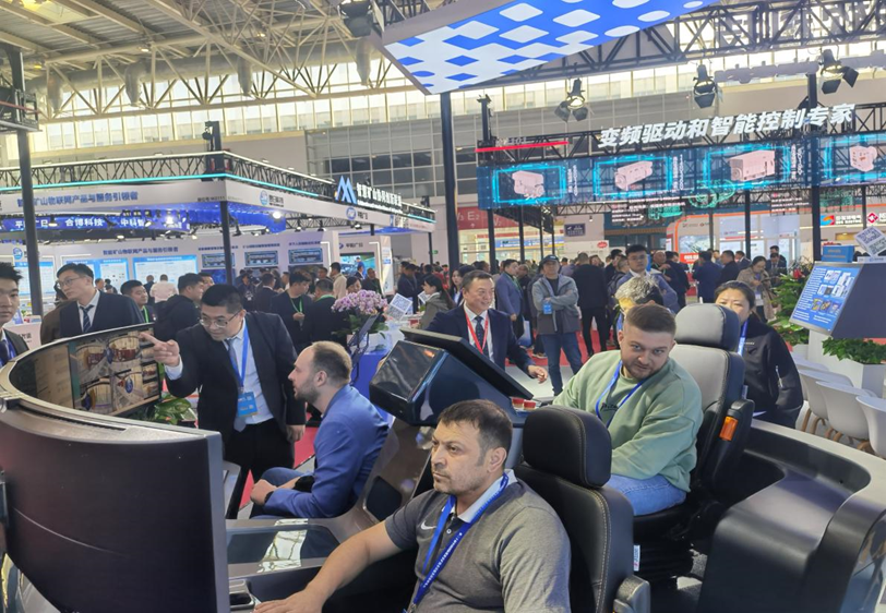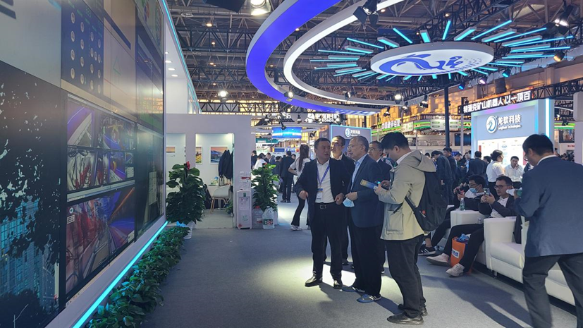 在展会现场进行公司技术验证基地(河北燕郊)综采工作面的远程管控