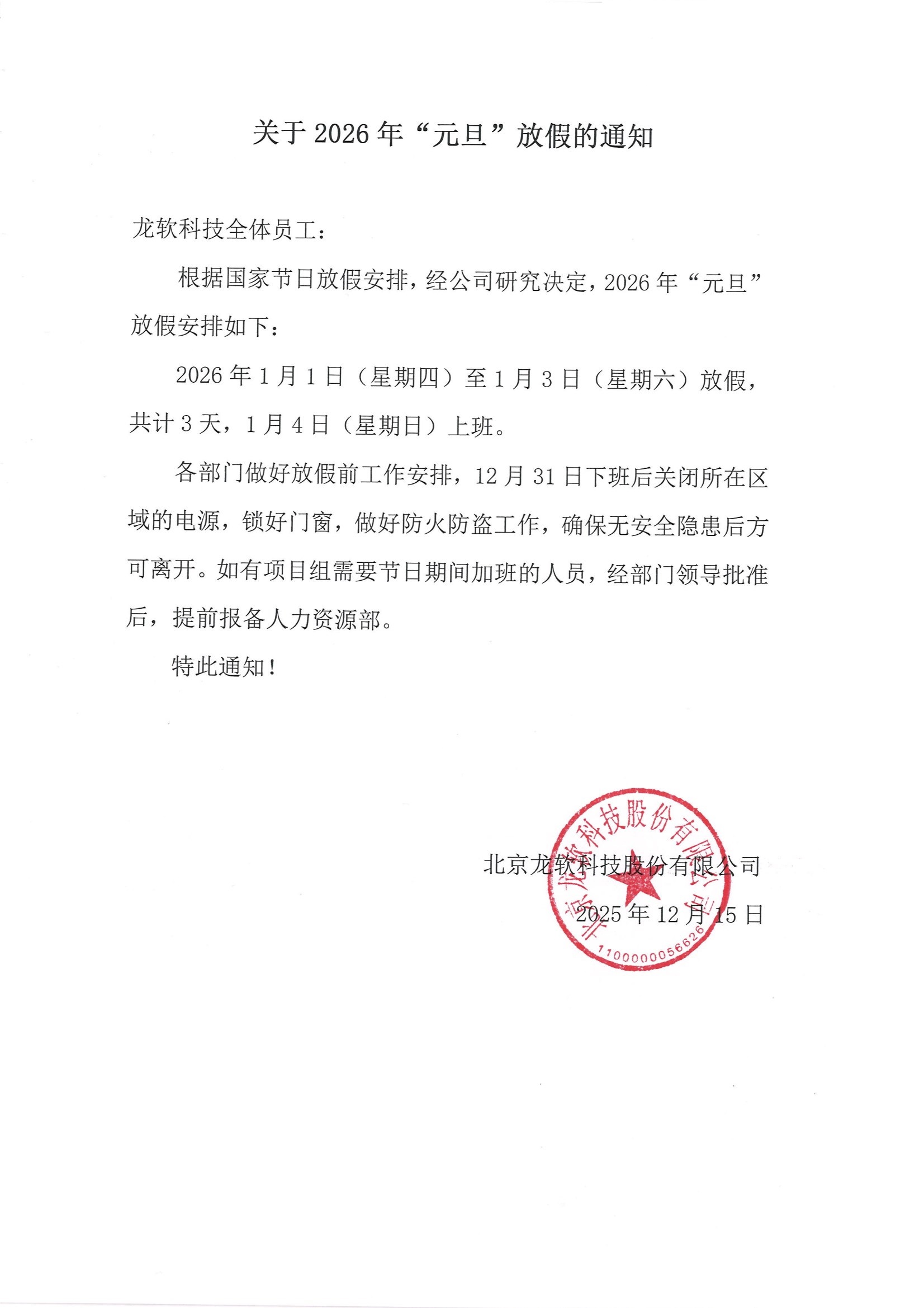 ¹ØÓÚ2026Äê¡°Ôªµ©¡±·Å¼ÙµÄ֪ͨ